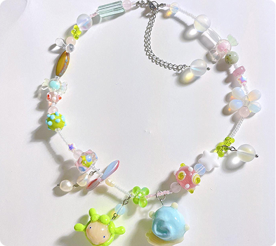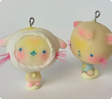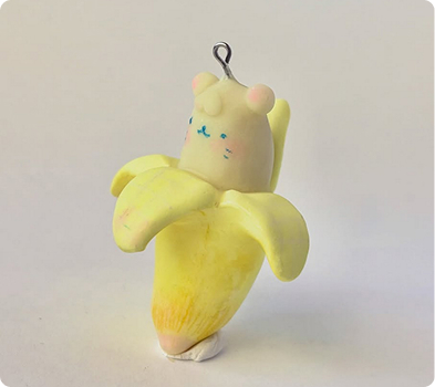 This month's theme, “Favorite Food,” inspired some incredibly charming and personal creations. However, Shohei's hand-painted, abstract, sushi-inspired clay pendant series won the club over instantly!