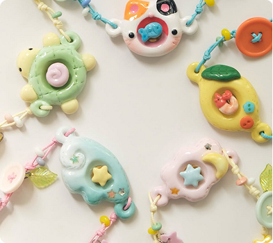 This month's theme, “Favorite Food,” inspired some incredibly charming and personal creations. However, Shohei's hand-painted, abstract, sushi-inspired clay pendant series won the club over instantly!